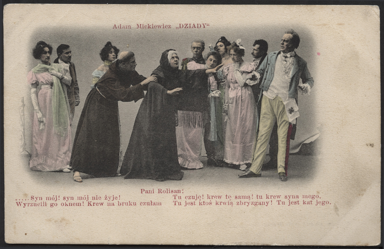 Nazwa: Reprodukcja rysunku, "Dziady" w inscenizacji Stanisława Wyspiańskiego, data: 1901, miejsce: , typ obiektu: , wymiary9,0 x 14,1, opis: Scena z "Dziadów", druk.