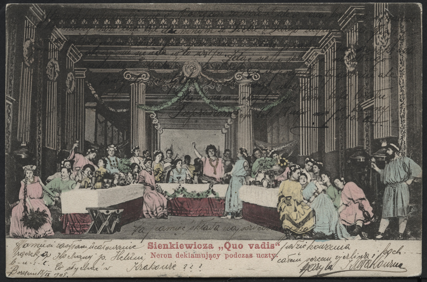 Nazwa: Reprodukcja malarstwa, scena z "Quo vadis", data: ok. 1903, miejsce: , typ obiektu: , wymiary9,0 x 13,9, opis: "Quo vadis", scena zbiorowa, druk.