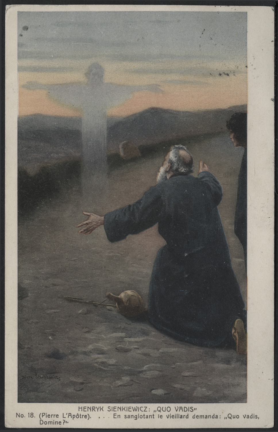 Nazwa: Reprodukcja malarstwa, scena z "Quo vadis", data: ok. 1909, miejsce: , typ obiektu: , wymiary14,0 x 8,9, opis: Ilustracja "Quo vadis", wizja św. Piotra; druk barwny.