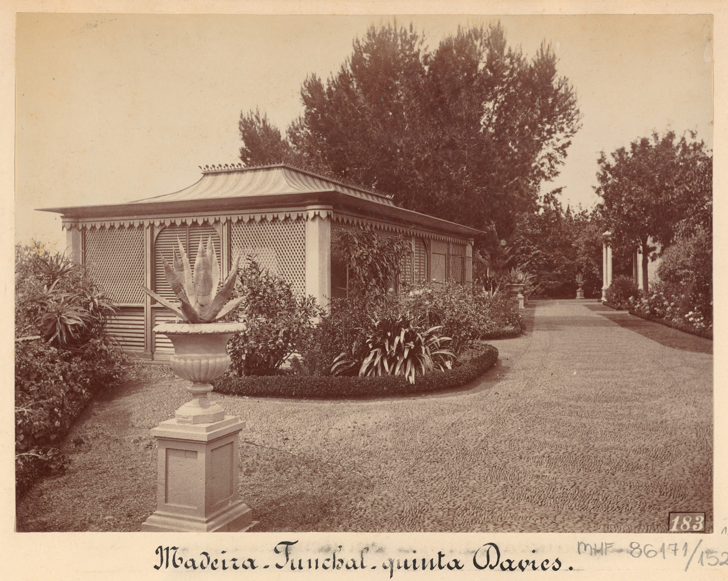 Nazwa: Madera. Funchal. Posiadłość Davisa., data: 1887-1888, miejsce: , typ obiektu: , wymiary15,2 x 20,4, opis: Alejka i drewniany pawilon.