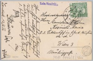 Nazwa: Tyrol , most, data: 1 poł. XX w. przed 1912, miejsce: , typ obiektu: , wymiary9 x 14, opis: karta pocztowa reprod. druk barw. ; most kolejowy w górach ; u g. podpis w j.n. czerwony druk; odwr.: ziel.druk firm. znak, odręcznie tekst koresp.; pieczęć tusz.