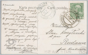 Nazwa: reprod. mal.: Wesele idzie Wincenty Wodzinowski, data: 1908, miejsce: , typ obiektu: , wymiary9 x 14, opis: karta pocztowa repr.mal. sc.rodz.dr.barw. ; na marginesie z pr.podpis w j.pol. czarny druk; odwr.: druk firm. znak, odręcznie tekst koresp.; pieczęć tusz.