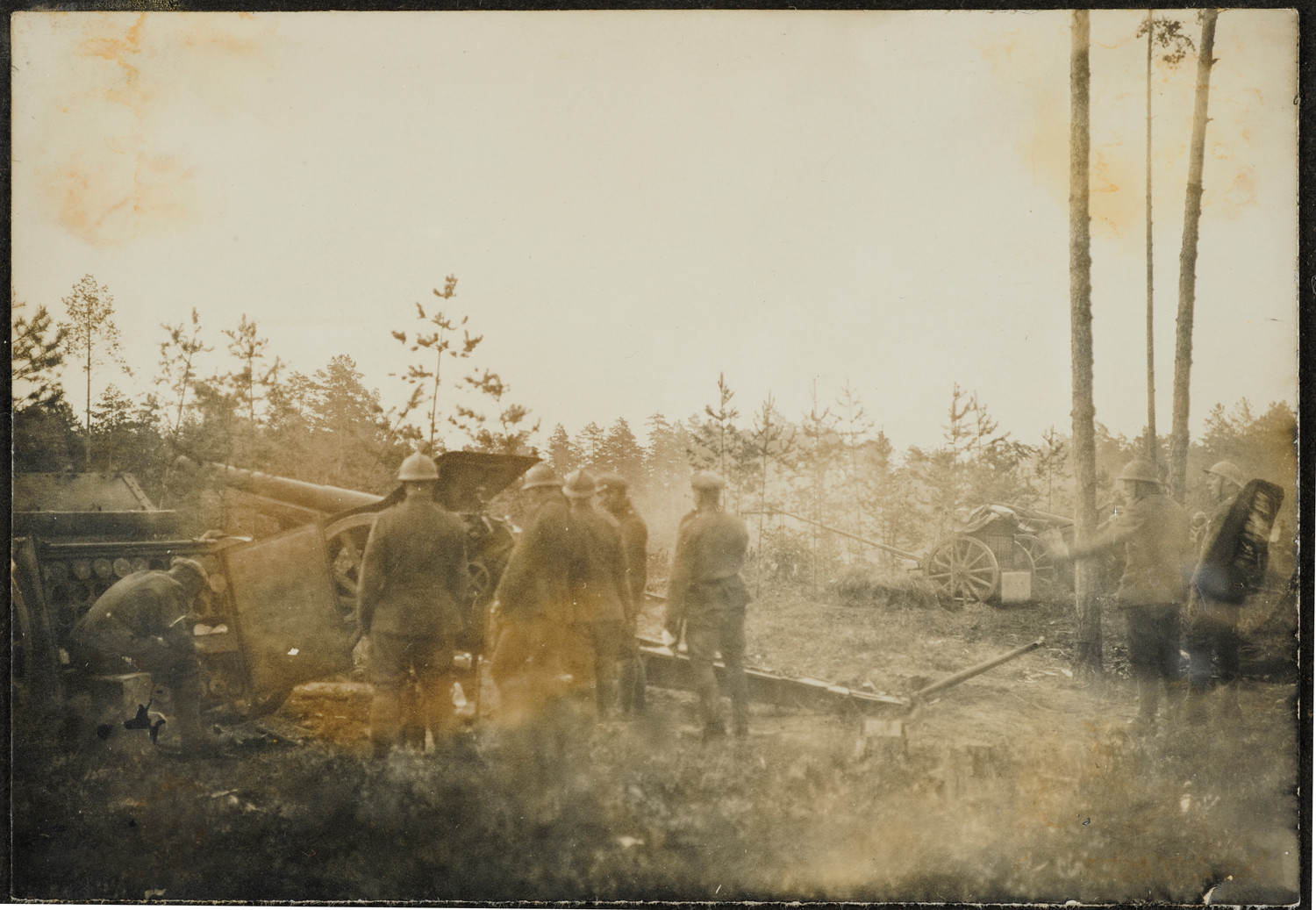 Nazwa: Stanowisko artyleryjskie, data: 1919, miejsce: , typ obiektu: , wymiary9,0 x 13,0, opis: W lesie stanowisko artyleryjskie Schneider 120mm mark 78-09-31 z jaszem artyleryjskim.