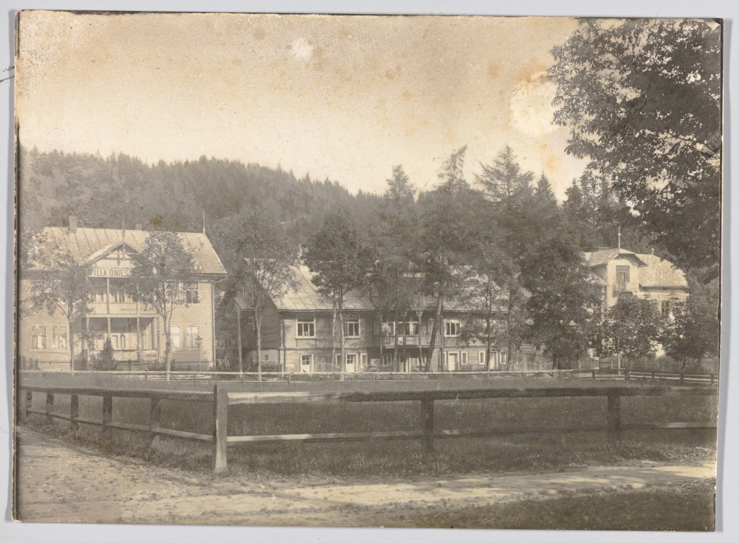 Nazwa: Krynica, wille, data: 1922, miejsce: , typ obiektu: , wymiary8,6 x 12,3, opis: piętrowe, drewniane wille na tle lasu;