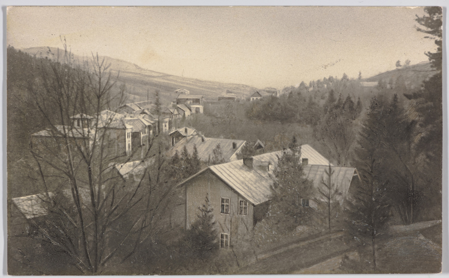 Nazwa: Krynica, widok, data: 1922 ?, miejsce: , typ obiektu: , wymiary8,2 x 13,3, opis: krajobraz dolinki, ze zwartą, piętrową zabudową mieszkalną;