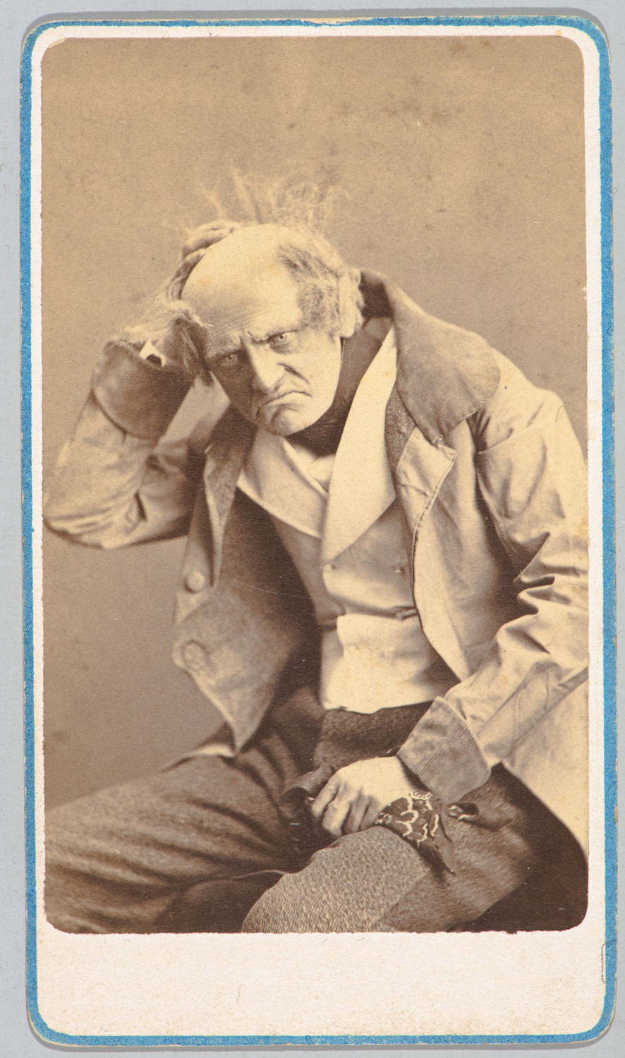 Nazwa: Wincenty Rapacki, portret atelierowy jako Jan Zrzęda w sztuce Aleksandra Fredry, data: 07.12.1865, miejsce: , typ obiektu: , wymiary10,5 x 6, opis: Portret atelierowy W. Rapackiego w roli J. Zrzędy, na tekturce odwróconej winieta.