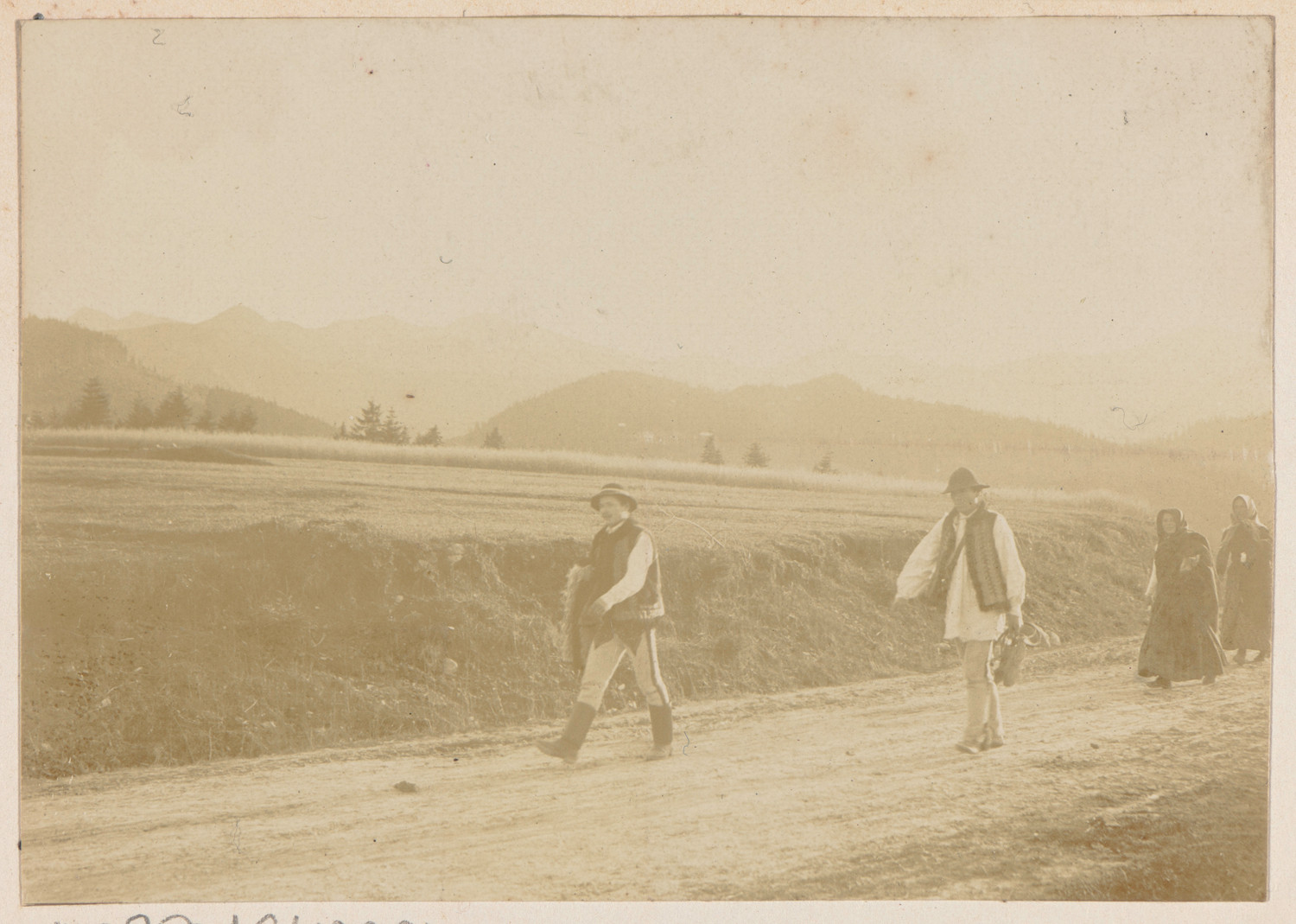Nazwa: okolice Zakopanego, data: 1900-1901, miejsce: , typ obiektu: , wymiary6,1 x 8,6, opis: pejzaż; Górale zakopiańscy