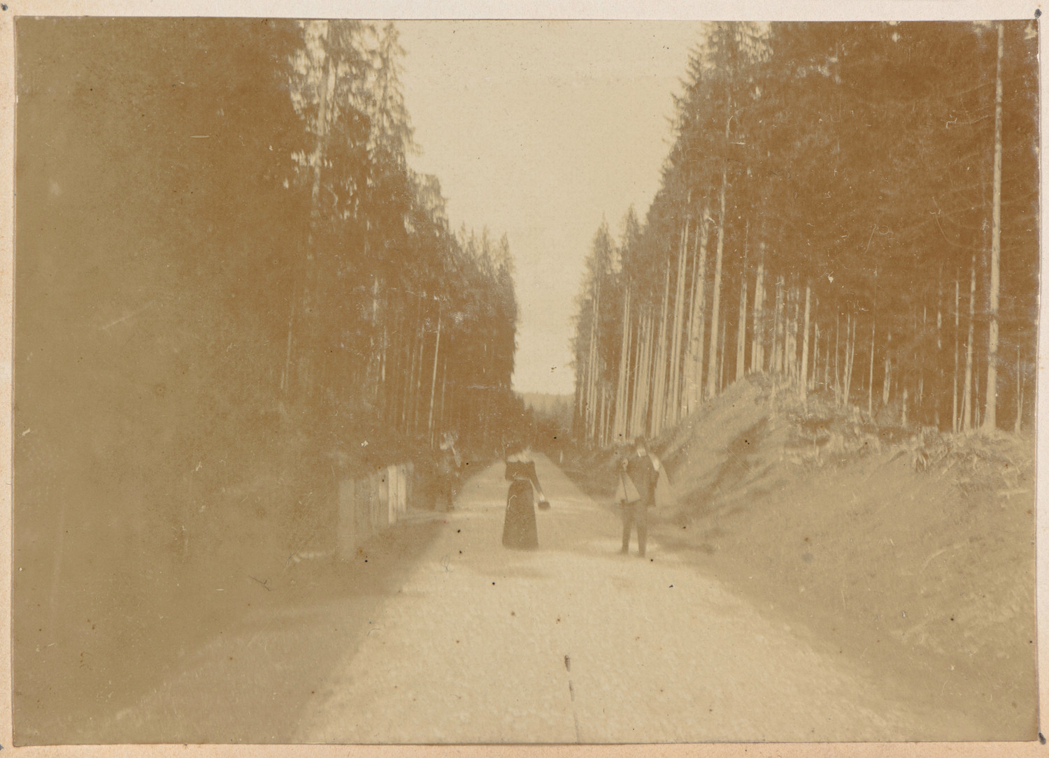 Nazwa: okolice Zakopanego, data: 1900-1901, miejsce: , typ obiektu: , wymiary6,1 x 8,6, opis: droga do Morskiego Oka (?)