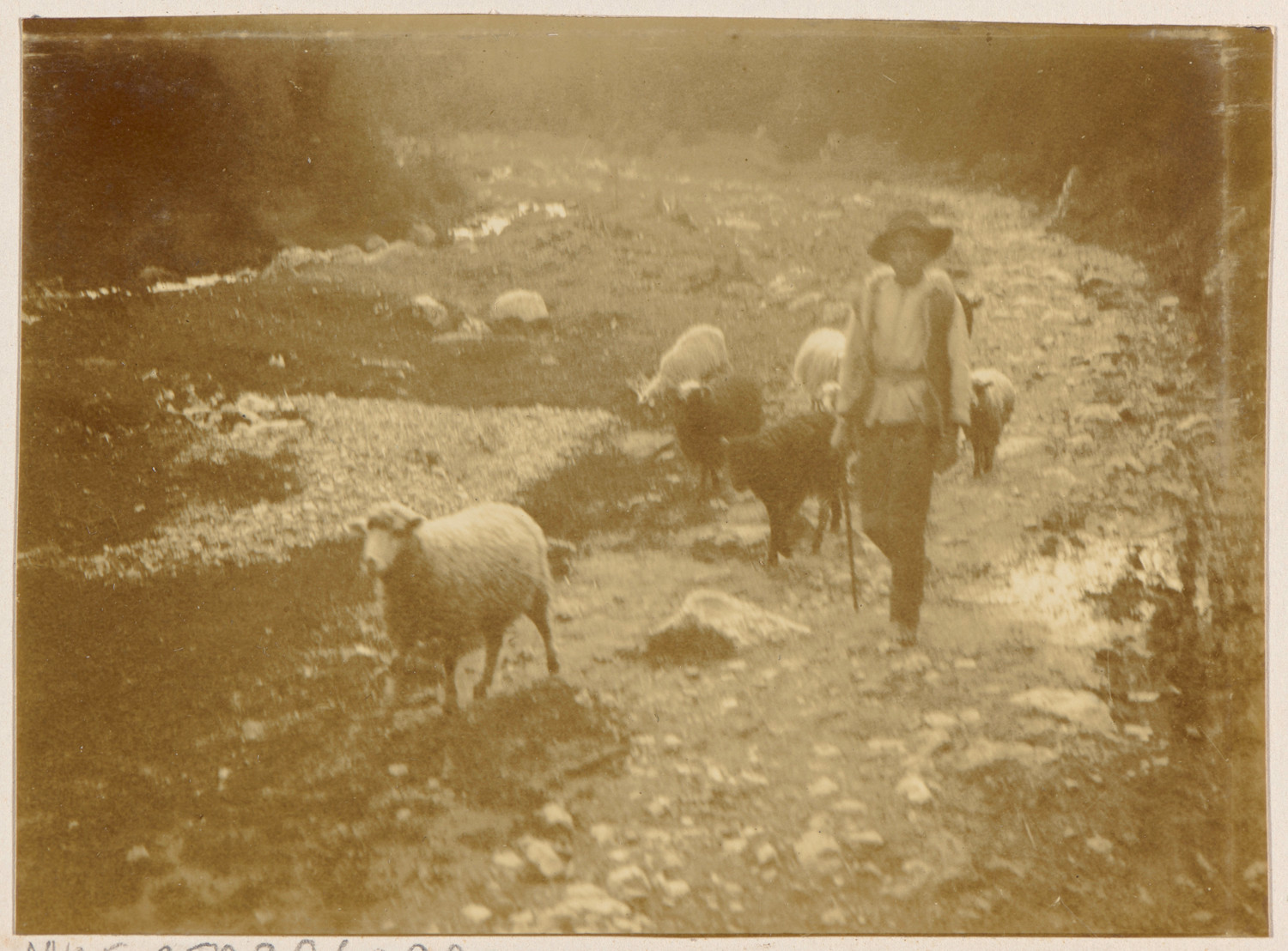 Nazwa: Tatry, kierdel owiec z juhasem, data: 1900-1901, miejsce: , typ obiektu: , wymiary6,1 x 8,3, opis: droga górska; las