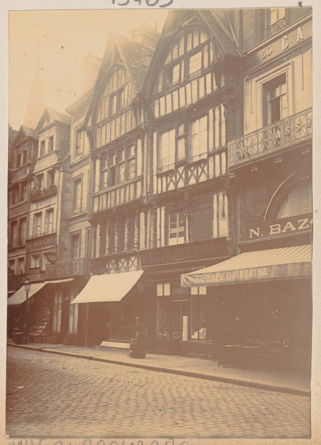 Nazwa: Normandia, Caen, ulica, data: 1900-1901, miejsce: , typ obiektu: , wymiary8,4 x 6,0, opis: ulica, kamienice XV-XVI w., konstrukcja ryglowa, reklamy