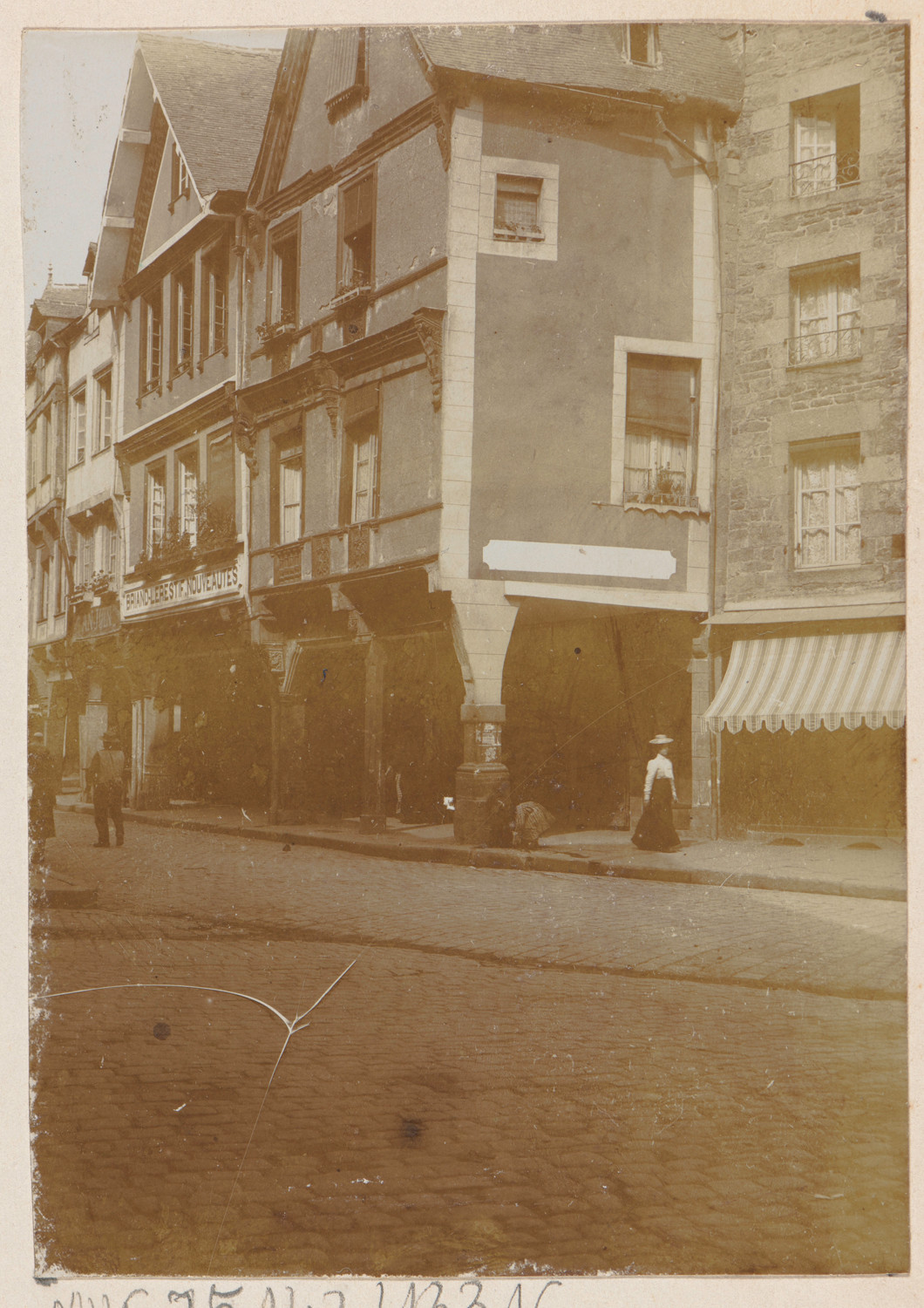 Nazwa: Dinan (?), widok ulicy, data: 1900-1901, miejsce: , typ obiektu: , wymiary8,4 x 6,0, opis: Bretania, kamienice, podcienie, sztafaż