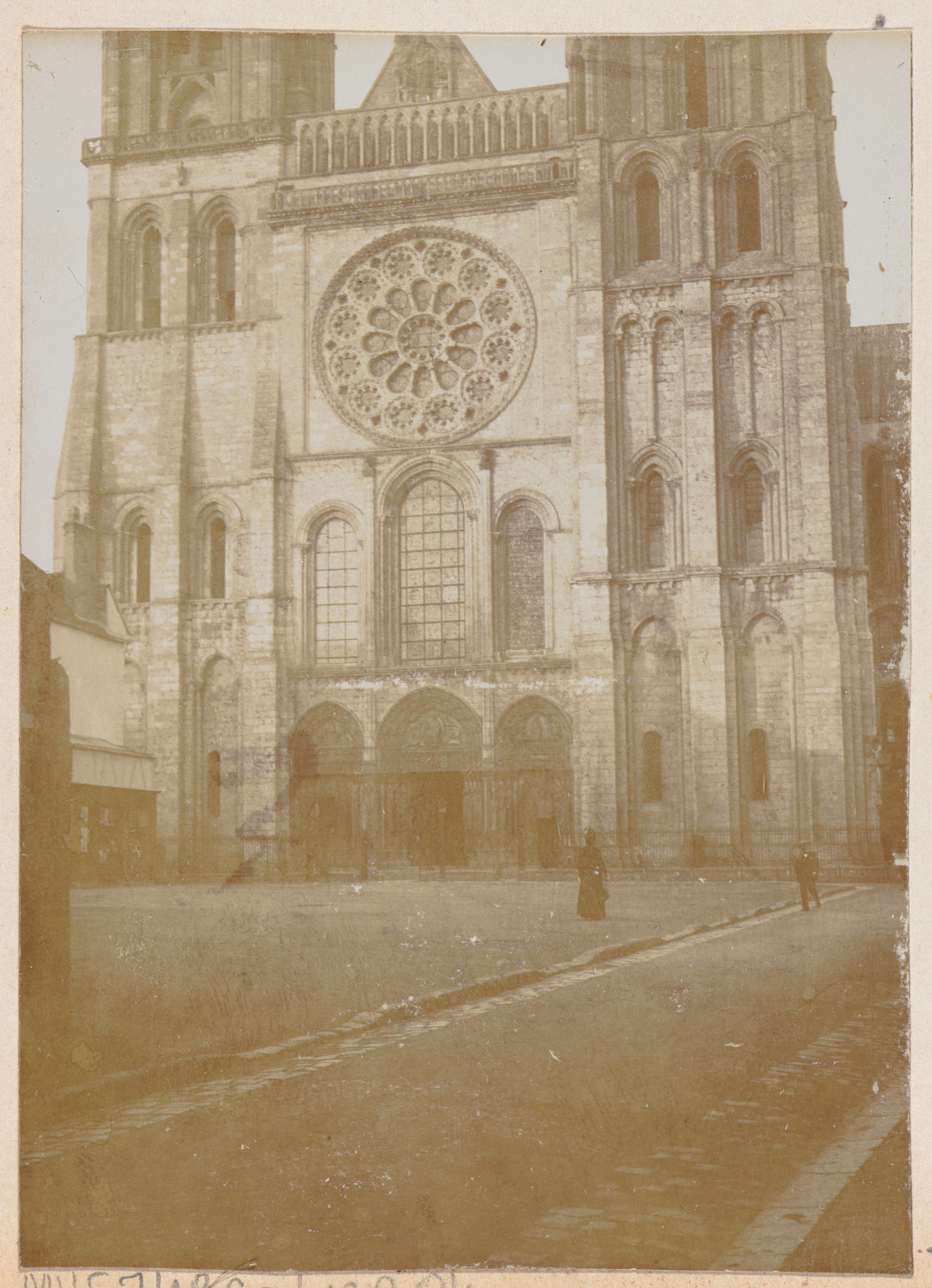 Nazwa: Chartres, katedra, data: 1900-1901, miejsce: , typ obiektu: , wymiary8,4 x 6,0, opis: romanizm, architektura sakralna, fasada