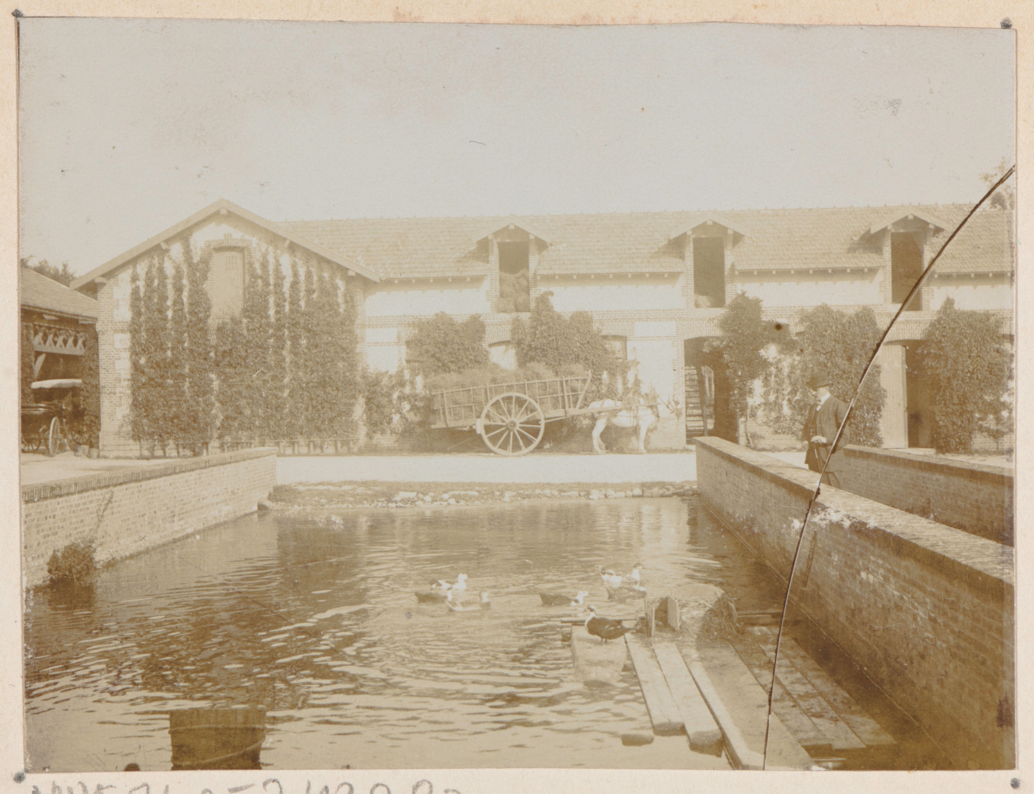 Nazwa: Bretania, zespół tradycyjnej zabudowy, data: 1900-1901, miejsce: , typ obiektu: , wymiary6,0 x 7,9, opis: budynek gospodarczy; staw hodowlany; wóz konny; bryczka