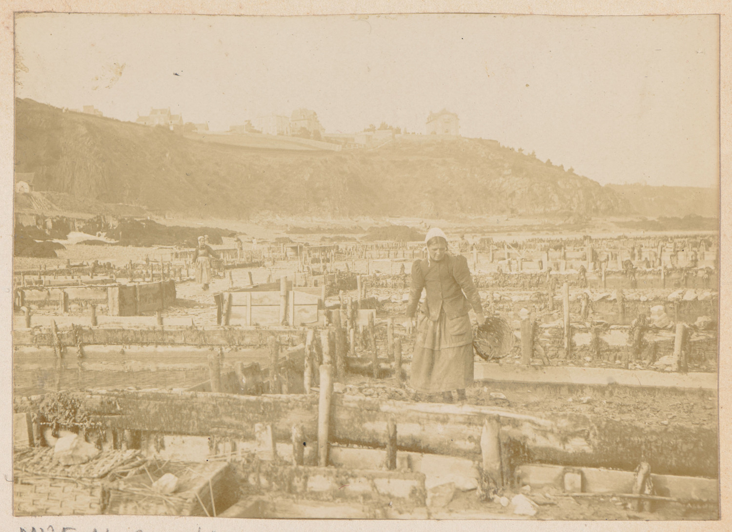 Nazwa: Bretania (?), hodowla ostryg, data: 1900-1901, miejsce: , typ obiektu: , wymiary6,1 x 8,5, opis: brzeg morski; płotki z faszyny;