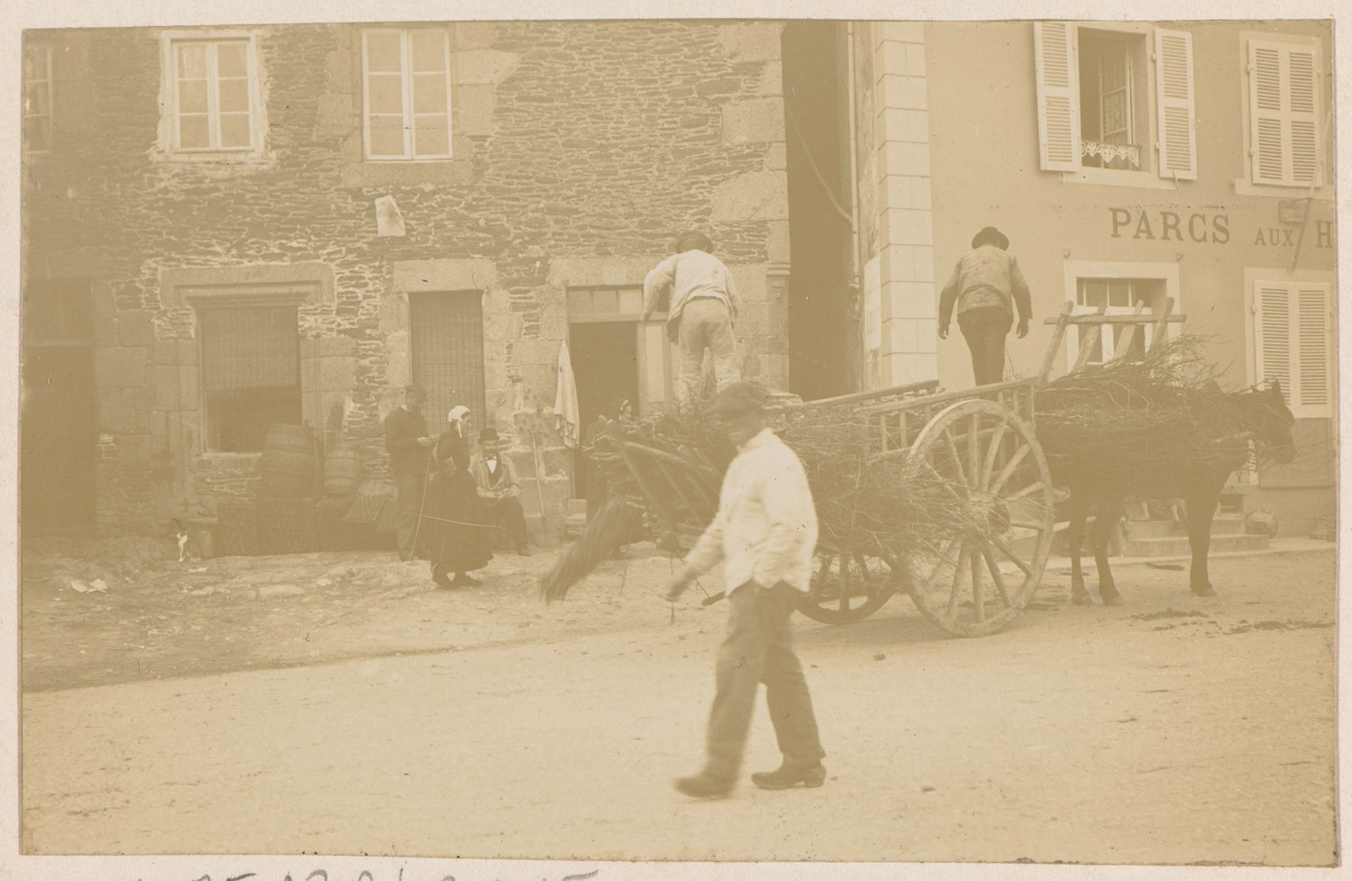 Nazwa: Bretania (?), miejscowość nadmorska, data: 1900-1901, miejsce: , typ obiektu: , wymiary5,5 x 8,5, opis: domy rybackie, ludność; zajęcia gospodarskie; wóz konny;