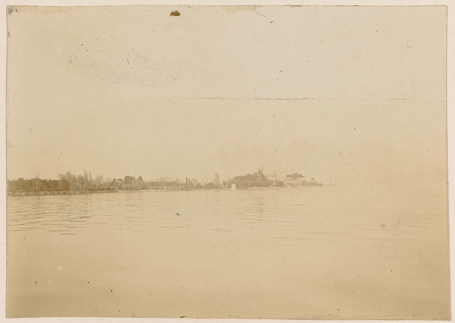 Nazwa: pejzaż - brzeg jeziora, data: 1900-1901, miejsce: , typ obiektu: , wymiary6,1 x 8,6, opis: fotografia pamiątkowa; zabudowa przybrzeżna;