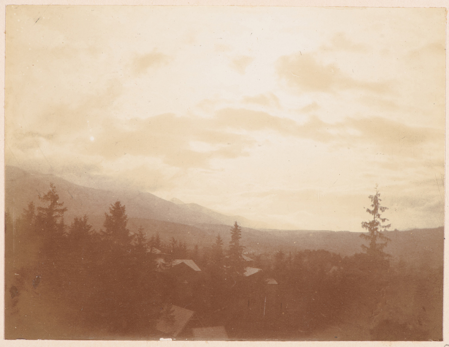 Nazwa: Panorama gór, Zakopane, data: 1903, miejsce: , typ obiektu: , wymiary7,9 x 10,3, opis: Fotografia pejzażowa, pasmo tatrzańskie, chmury, Zakopane.