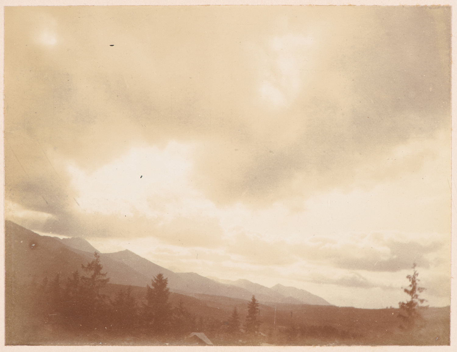 Nazwa: Panorama gór, Zakopane, data: 1903, miejsce: , typ obiektu: , wymiary7,9 x 10,3, opis: Fotografia pejzażowa, pasmo tatrzańskie, chmury, Zakopane.