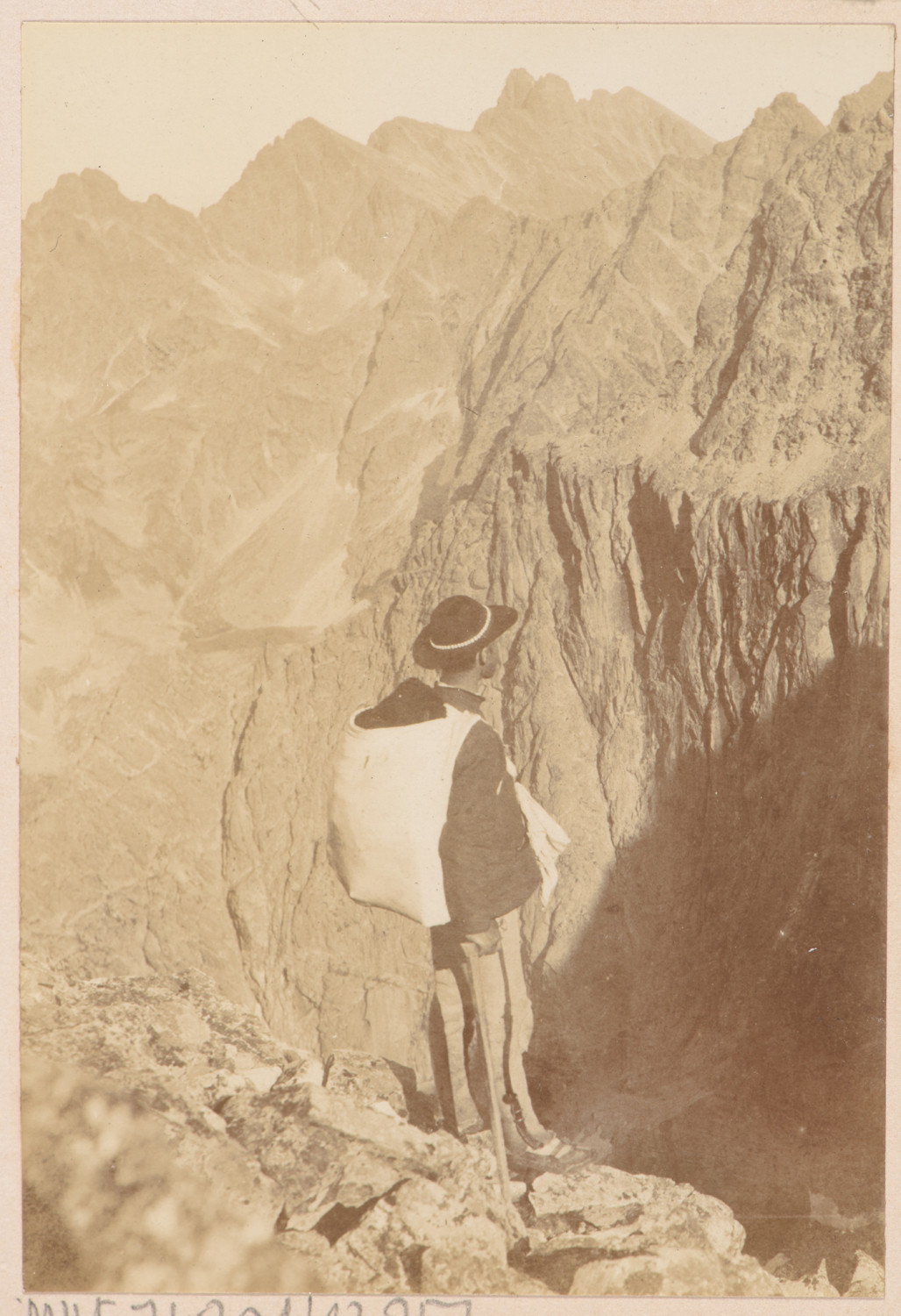 Nazwa: Góral na tle panoramy Tatr, data: 1903, miejsce: , typ obiektu: , wymiary8,5 x 5,8, opis: Mężczyzna w stroju góralskim, portret z góry na tle rozległej górskiej panoramy.