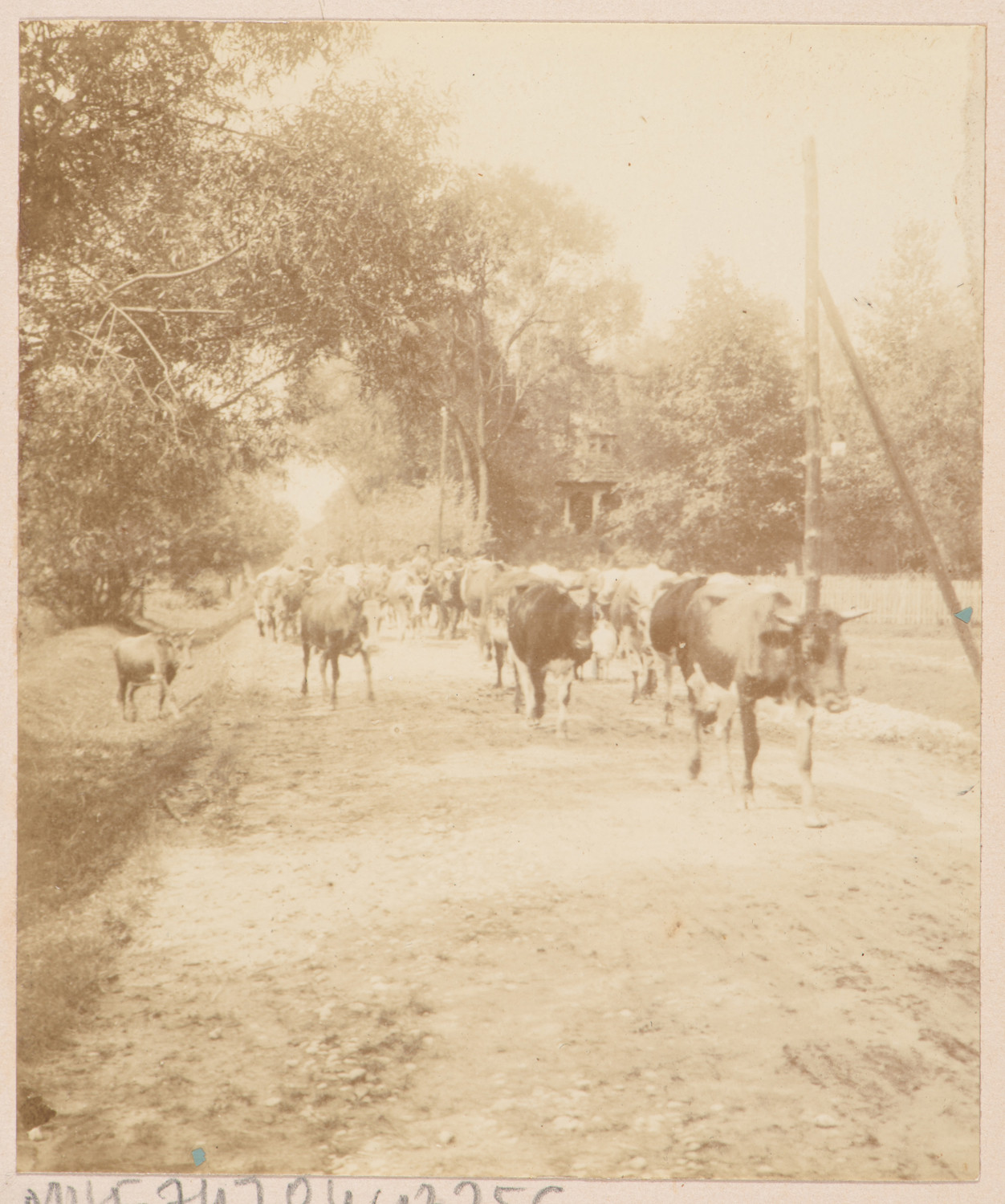 Nazwa: Stado krów na wiejskiej drodze., data: 1903, miejsce: , typ obiektu: , wymiary7 x 5,9, opis: Stado krów idące piaszczystą drogą.