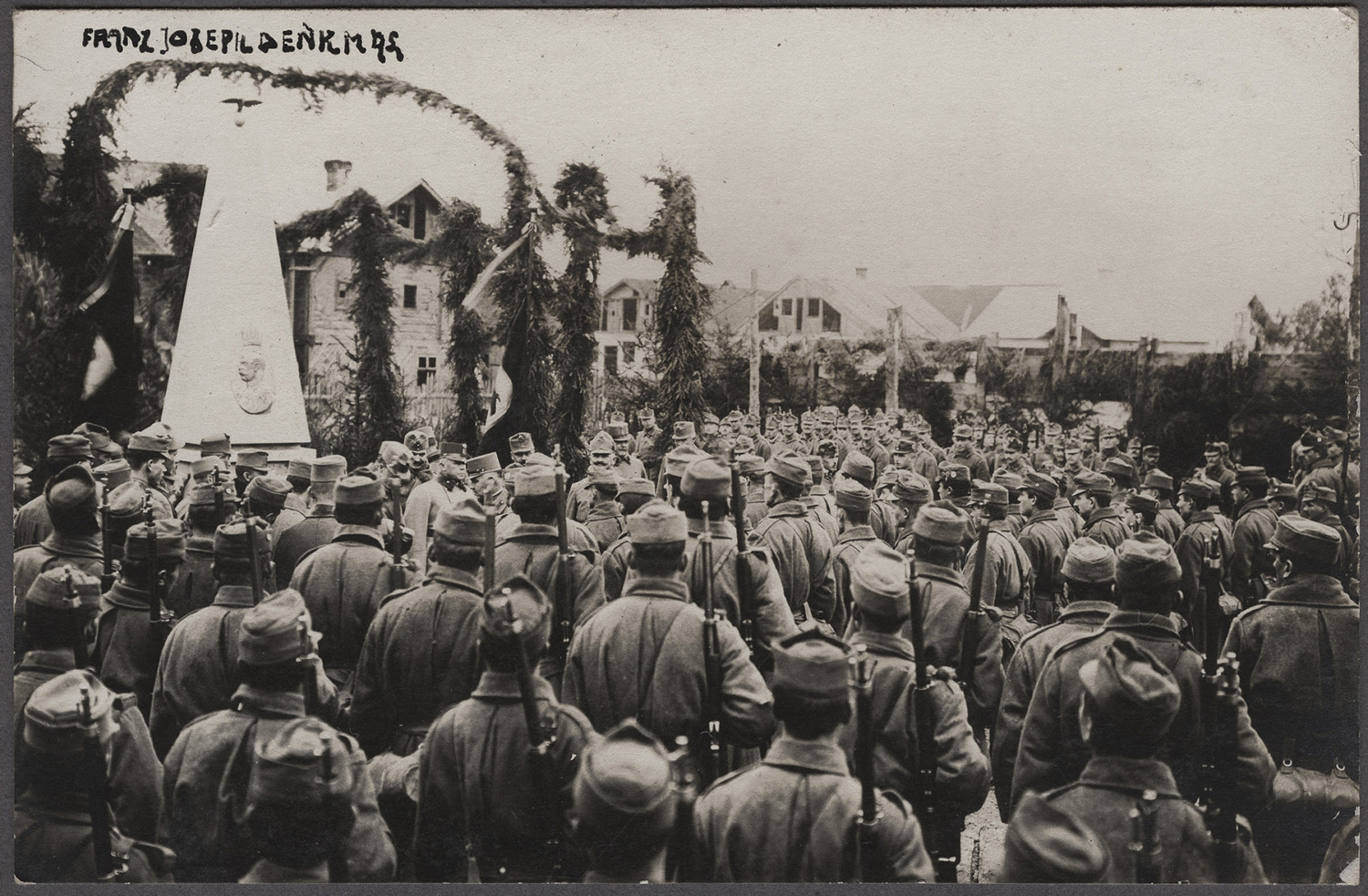 Nazwa: Szczurowice, pomnik Franciszka Jożefa, data: 1917, miejsce: , typ obiektu: , wymiary13,8 x 8,9, opis: Osłonięcie pomnika Franciszka Józefa I