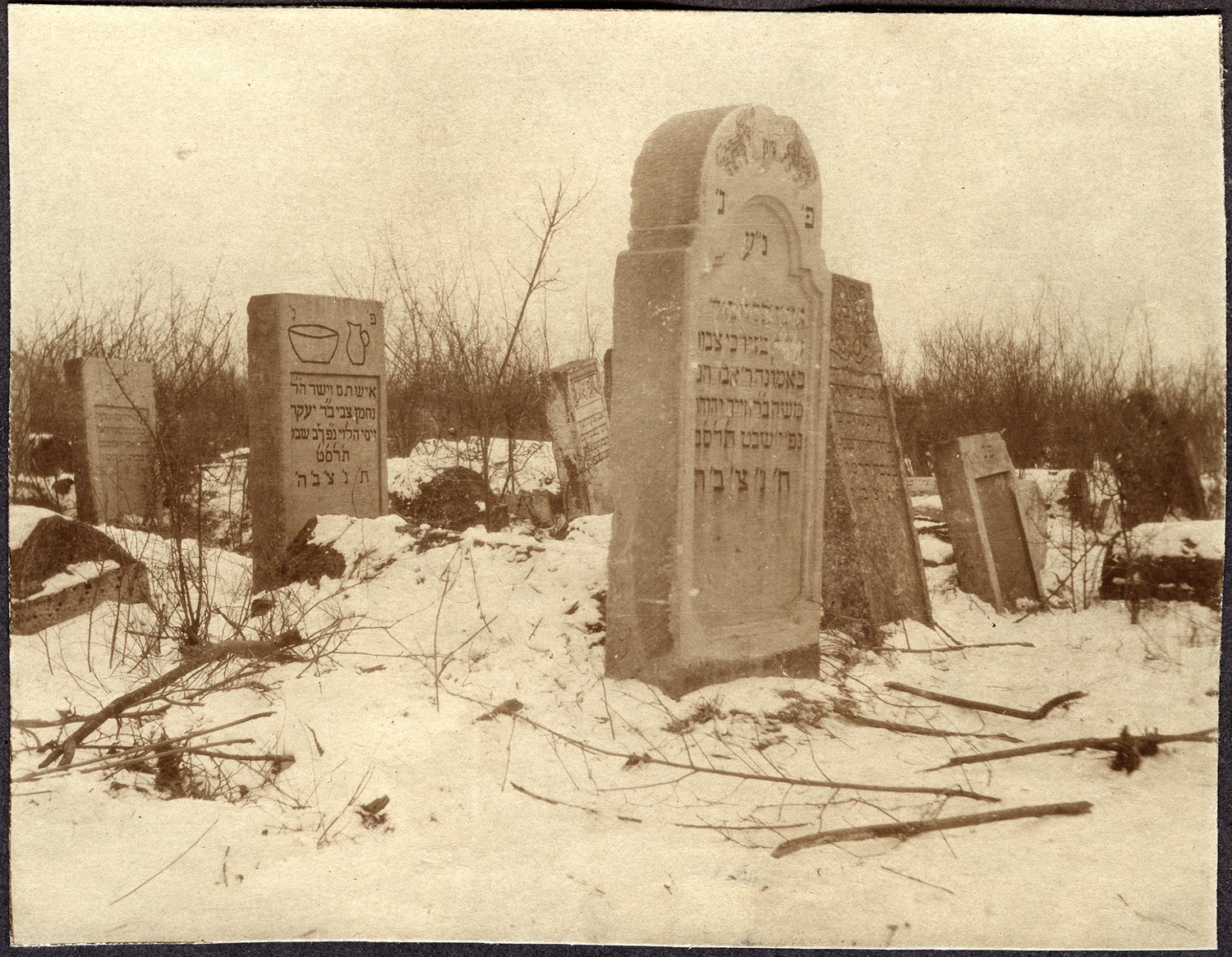Nazwa: kirkut, data: 1914-1918, miejsce: , typ obiektu: , wymiary10 x 7,6, opis: widok zimą na zaniedbany kirkut, widoczne nowe macewy (1909 ?).
