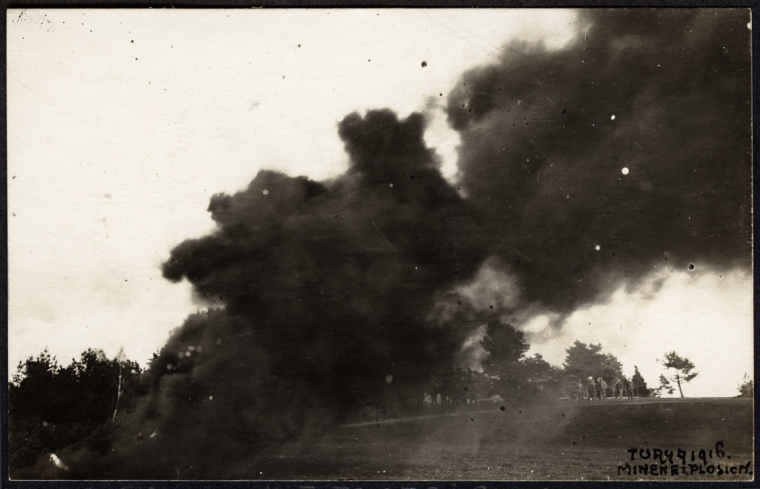 Nazwa: eksplozja miny, data: 1916, miejsce: , typ obiektu: , wymiary8 x 10,5, opis: moment eksplozji miny na skraju lasu.