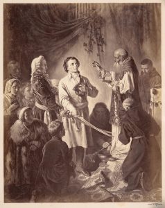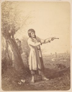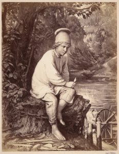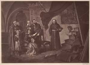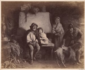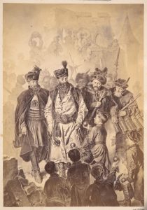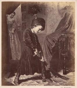 Nazwa: Album z reprodukcjami malarstwa, data: ok. 1870, miejsce: , typ obiektu: , wymiary47 x 34, opis: Album zawiera 23 karty, w tym tytułową, z portretami malarzy i odręcznymi tytułami. Na pozostałych 22 kartach naklejone fotografie obrazów Kotsisa, Kozakiewicza i Eljasza-Radzikowskiego.