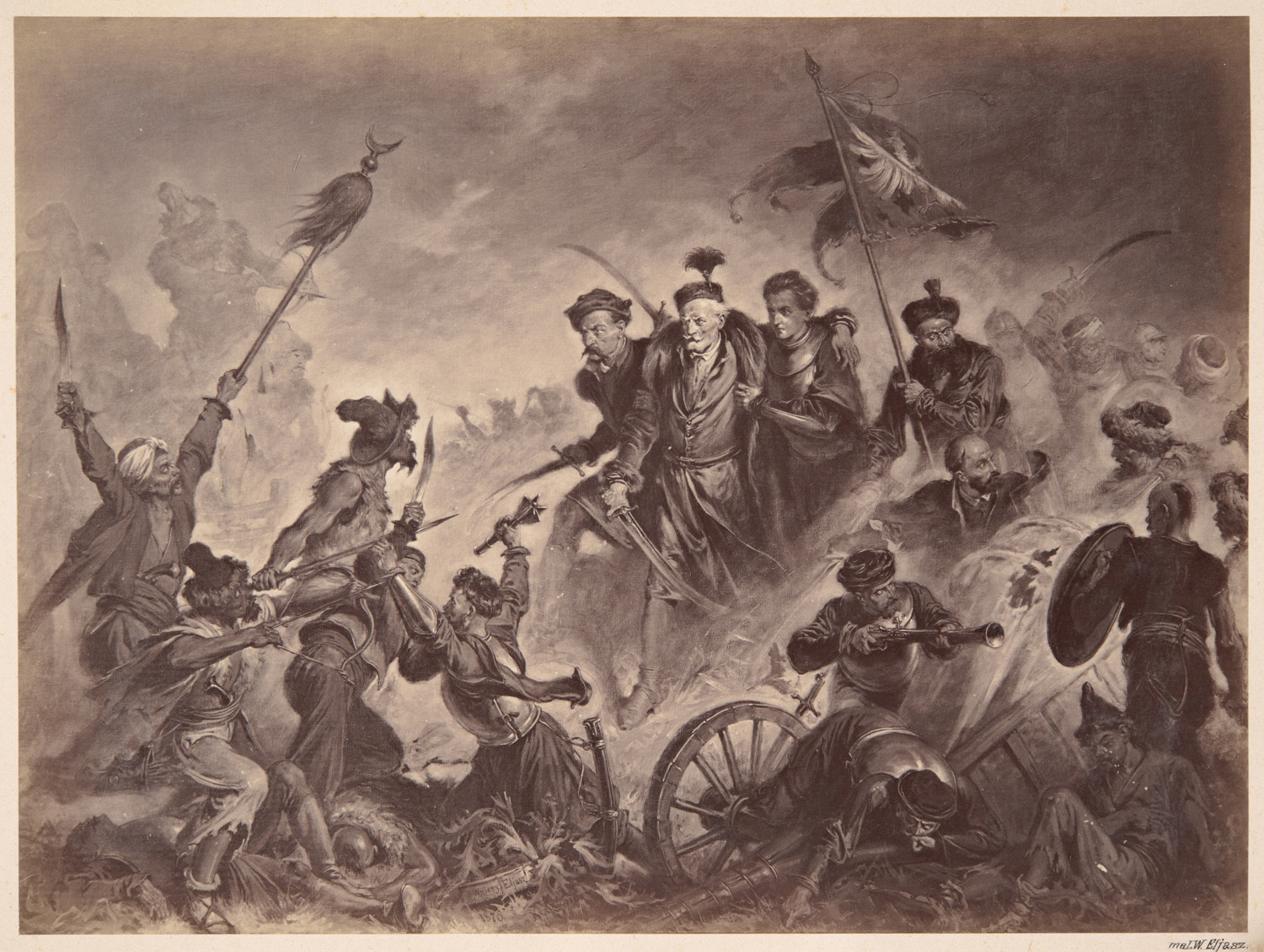 Nazwa: Repr. fot. malarstwa, "Stanisław Żółkiewski w biwie pod Cecorą", data: ok. 1870, miejsce: , typ obiektu: , wymiary17,5 x 23,5, opis: Reprodukcja obrazu olejnego Walerego Eljasza. Fotografia naklejona na kartę albumu