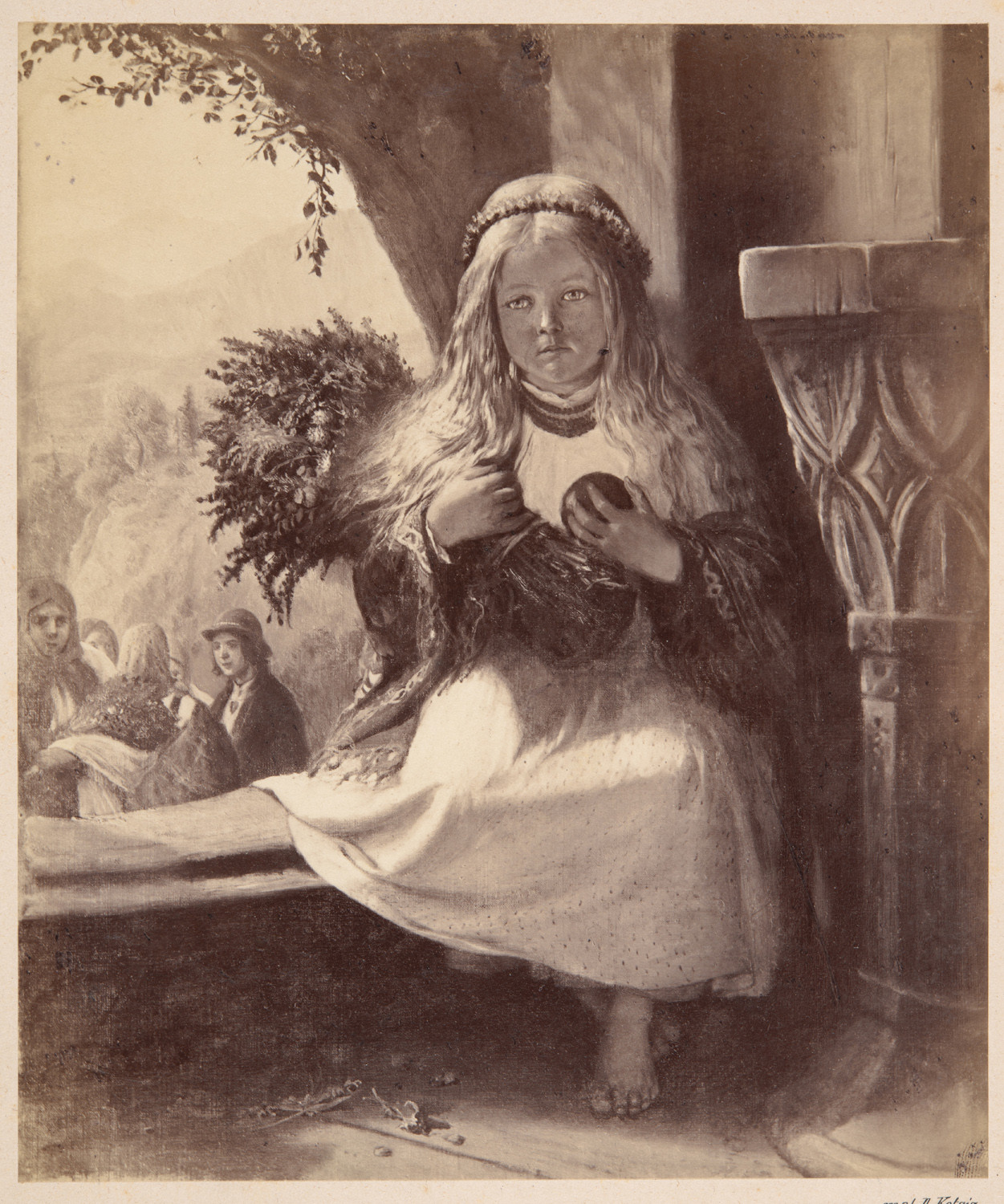 Nazwa: Repr. fot. malarstwa, "Niedziela zielna w Tatrach", data: ok. 1870, miejsce: , typ obiektu: , wymiary16,5 x 13,8, opis: Reprodukcja obrazu olejnego Aleksandra Kotsisa. Fotografia naklejona na kartę albumu