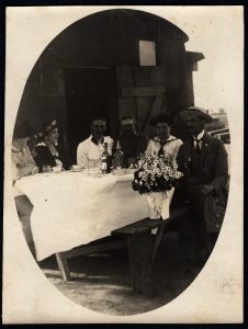 Nazwa: album zawierający 68 fotografii., data: 1914-1916, miejsce: , typ obiektu: , wymiary1 x 17, opis: Album wykonany z przesznurowanych 20 różnokolorowych kart w zielonej kartonowej okładce, zawierający 68 fotografii z lat I Wojny Światowej.