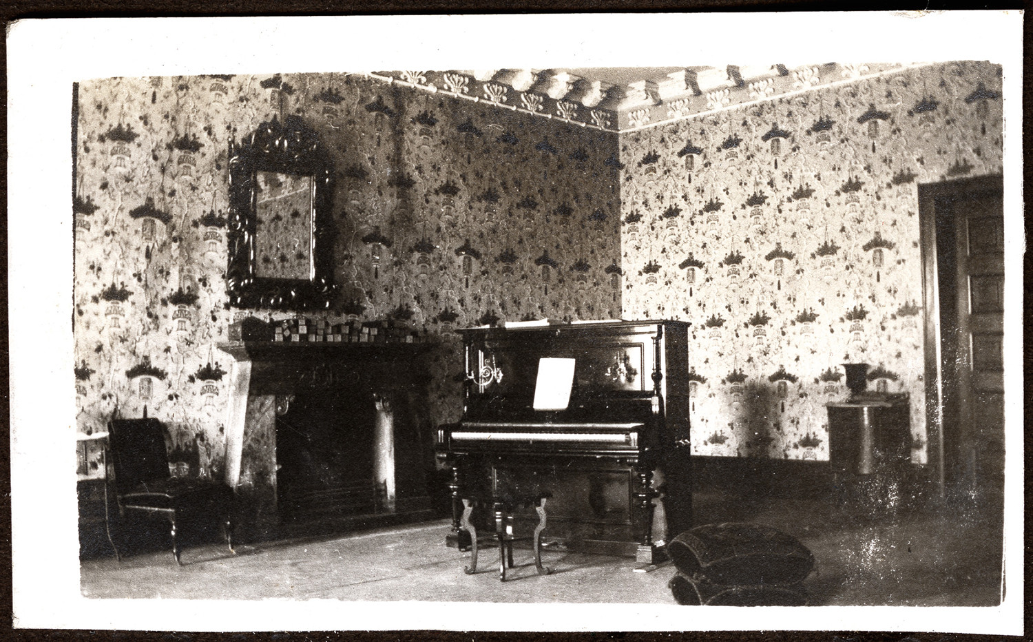 Nazwa: Zator, zamek, wnętrze, data: 01.1916 r, miejsce: , typ obiektu: , wymiary4 x 7, opis: Wnętrze sali z kominkiem w zamku w Zatorze.