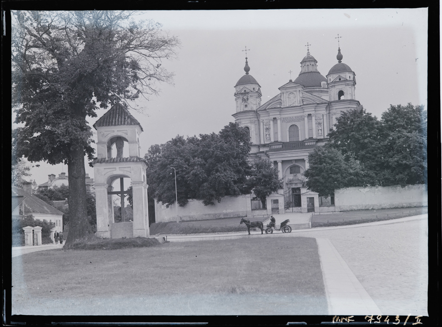 Nazwa: Wilno, kościół śś. Piotra i Pawła, data: 1936 r., miejsce: , typ obiektu: , wymiary8,7 x 12, opis: Wilno, kościół św. Piotra i Pawła na Antokolu, widok fasady,